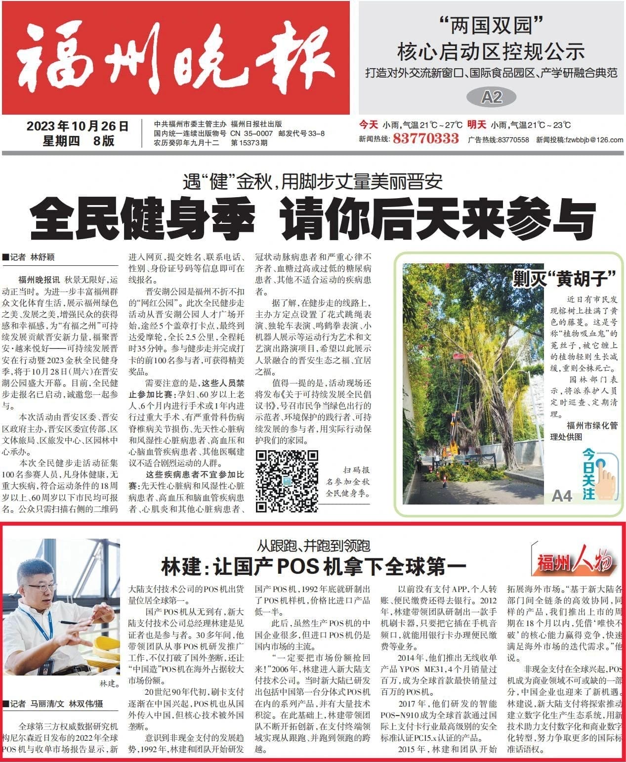 10月26日,福州晚報“福州人物”欄目刊發(fā)專題報道《林建:讓國產(chǎn)POS機拿下全球第一》。集團官微今日全文轉(zhuǎn)發(fā),以饗讀者。