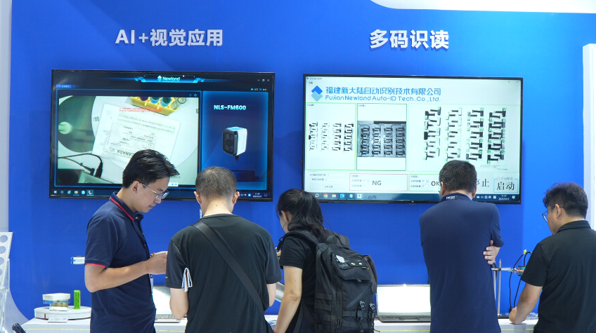 本屆工博會上,新大陸自動識別基于深度學習的AI技術與自身成熟的硬件終端深度融合,展出的應用包括:AI 視覺檢測、工業讀碼、RFID群讀批量識別、零部件OCR識別、移動作業一體化方案等,覆蓋入庫、生產、組裝、倉儲、出貨、運輸等制造全流程,直觀演繹從單點讀碼到“生產-質檢-倉儲”全鏈路追溯的數據閉環,樹立行業價值新標桿,全面賦能3C電子、新能源、汽車汽配、物流倉儲、醫藥食品等制造行業質量管理與追溯,助力工業制造企業提質增效。