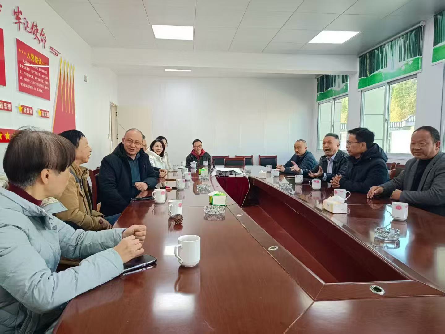 ? ? ? ?實地調研結束后,各方在西安村村委會召開了鄉村振興座談會。盧玉勝代表首先感謝新大陸自動識別公司長期以來對西安村的關心與支持,并系統介紹了近年來西安村在黨建引領下,通過“合作社+農戶”模式,在油茶、銀杏、生態養殖等特色產業上取得的突破,以及村莊基礎設施、人居環境的顯著改善。