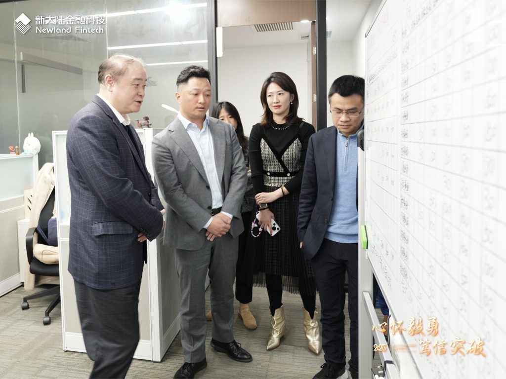 會議開始前,胡鋼董事長一行來到新大陸金融科技視察調(diào)研,與一線員工交流,了解業(yè)務(wù)開展情況,向員工們致以新春的問候,并針對產(chǎn)品、市場、風控、研發(fā)等不同業(yè)務(wù)條線的員工提出新要求、新期待。胡鋼認為,2025年將是AI應(yīng)用的元年,新大陸已在多個領(lǐng)域開展AI應(yīng)用的創(chuàng)新嘗試,金融科技同樣大有可為,希望全體員工積極擁抱AI、把握市場趨勢、強化團隊協(xié)作,以更大的凝聚力打造更強的戰(zhàn)斗力。
